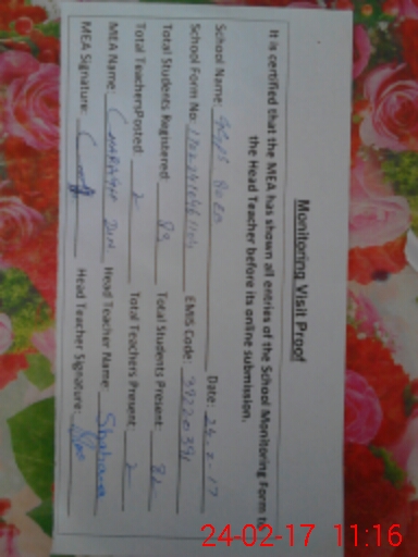 | Certified that this School was Inspected by the Undersigned MEA/DMO Today and the Information Stated Above is as Per Record. | |||||
