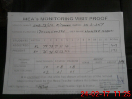 | Attendance Register | Head Teacher | MEA with School | Visit Proof |