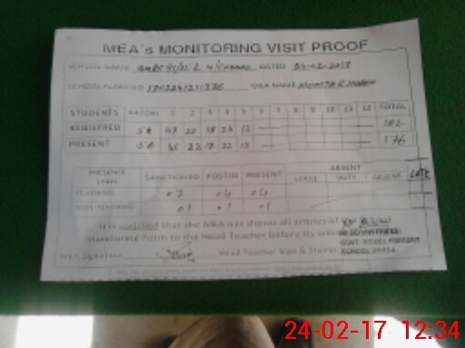 | Attendance Register | Head Teacher | MEA with School | Visit Proof |