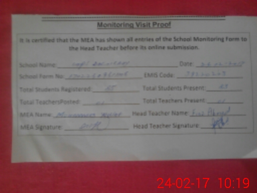| Certified that this School was Inspected by the Undersigned MEA/DMO Today and the Information Stated Above is as Per Record. | |||||