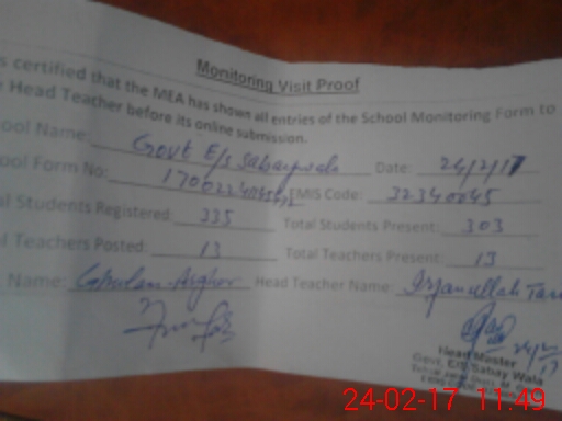 | EMIS Code: 32340045 | Name of School: GHS SABAY WALA | |||