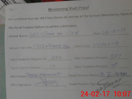 | EMIS Code: 33240119 | Name of School: GES CHAK NO. 3/3-R | |||