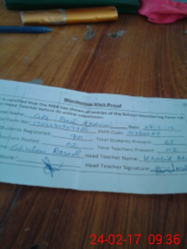 | Name: KH**** ME**** Designation: (School Headmaster's/Headmistress's) PST Phone/Cell Number: 03**** |