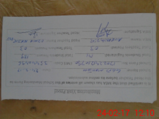 | Name: Kh**** Sh**** Designation: (School Headmaster's/Headmistress's) Ese Phone/Cell Number: 03**** |