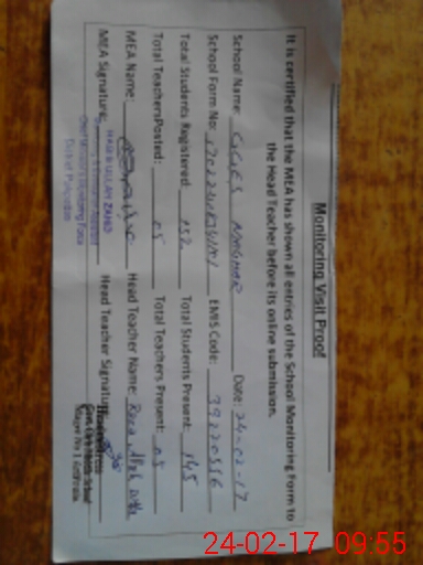 | Certified that this School was Inspected by the Undersigned MEA/DMO Today and the Information Stated Above is as Per Record. | |||||