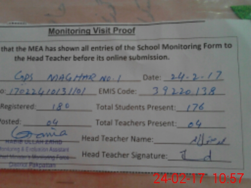 | EMIS Code: 39220138 | Name of School: GPS MAGHER NO. 1 | |||