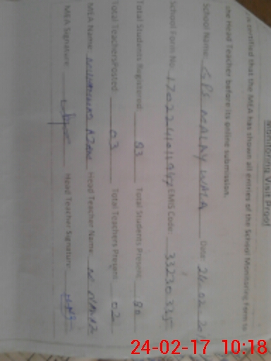 | Certified that this School was Inspected by the Undersigned MEA/DMO Today and the Information Stated Above is as Per Record. | |||||