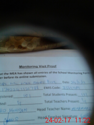 | Certified that this School was Inspected by the Undersigned MEA/DMO Today and the Information Stated Above is as Per Record. | |||||