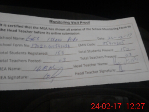 | Attendance Register | Head Teacher | MEA with School | Visit Proof |