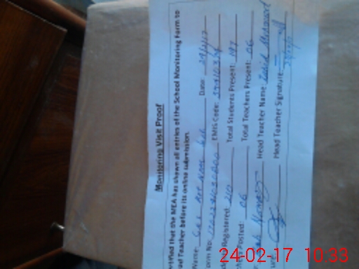 | Attendance Register | Head Teacher | MEA with School | Visit Proof |