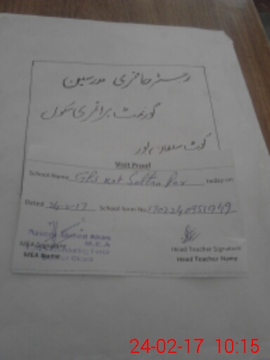 | EMIS Code: 39320338 | Name of School: GPS KOT SULTAN PUR | |||