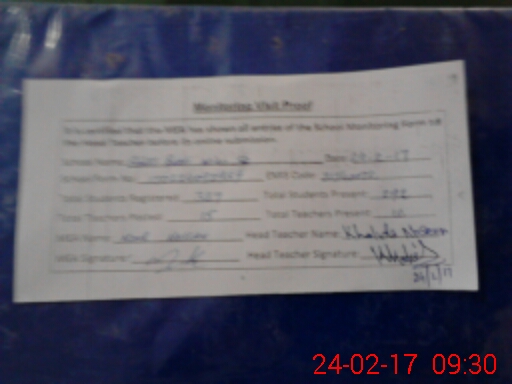 | Attendance Register | Head Teacher | MEA with School | Visit Proof |