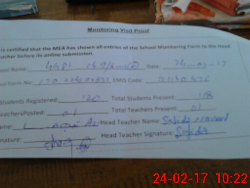 | Attendance Register | Head Teacher | MEA with School | Visit Proof |