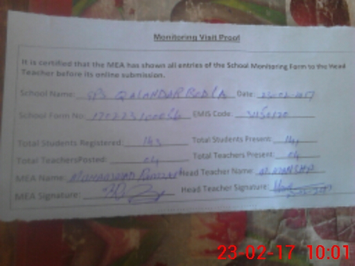 | EMIS Code: 31150120 | Name of School: GPS QALANDAR BODLA | |||
