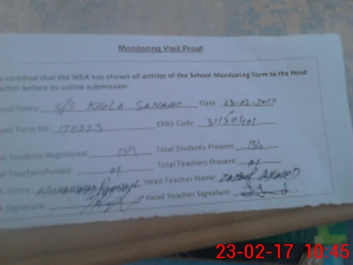| EMIS Code: 31150401 | Name of School: GPS KHOLA SANAM | |||