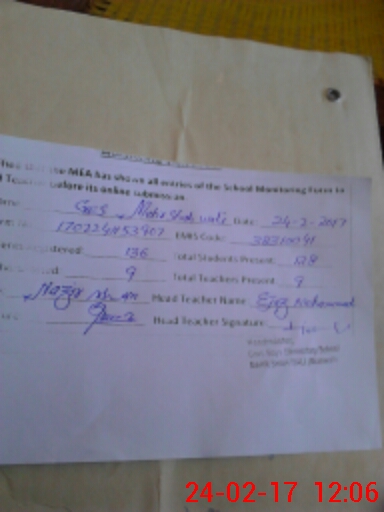 | EMIS Code: 38310041 | Name of School: GES MEHR SHAH WALI | |||