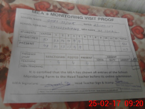| Attendance Register | Head Teacher | MEA with School | Visit Proof |