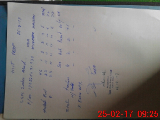 | Monitoring Date: 25-02-2017 | Start Time: 25-02-2017 08:52 AM | End Time: 25-02-2017 09:27 AM | Name of MEA: Z-**** Ha**** | |