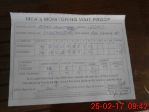 | Certified that this School was Inspected by the Undersigned MEA/DMO Today and the Information Stated Above is as Per Record. | |||||