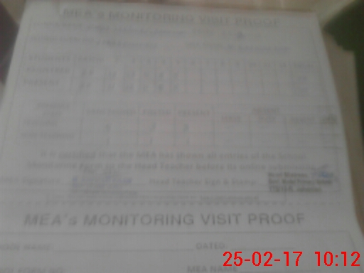 | Attendance Register | Head Teacher | MEA with School | Visit Proof |