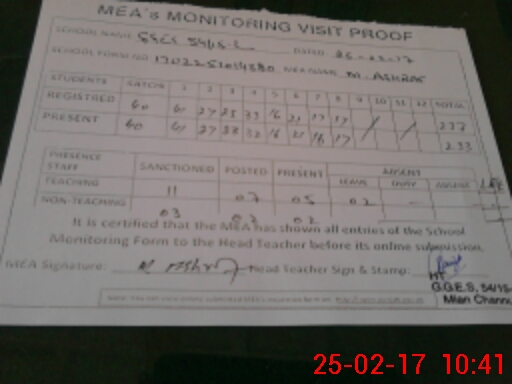 | Attendance Register | Head Teacher | MEA with School | Visit Proof |