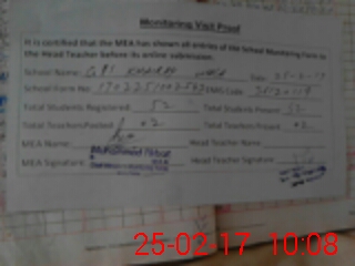 | Attendance Register | Head Teacher | MEA with School | Visit Proof |