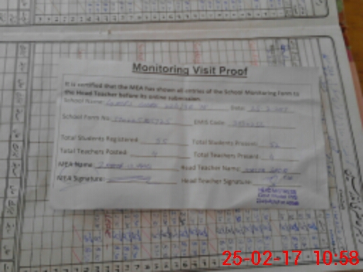 | Attendance Register | Head Teacher | MEA with School | Visit Proof |