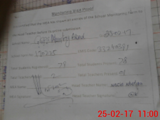 | Attendance Register | Head Teacher | MEA with School | Visit Proof |
