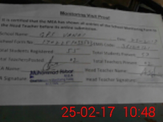 | Attendance Register | Head Teacher | MEA with School | Visit Proof |