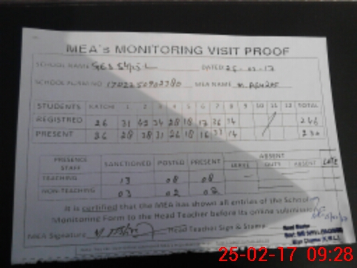 | Certified that this School was Inspected by the Undersigned MEA/DMO Today and the Information Stated Above is as Per Record. | |||||