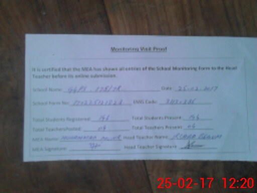 | Certified that this School was Inspected by the Undersigned MEA/DMO Today and the Information Stated Above is as Per Record. | |||||