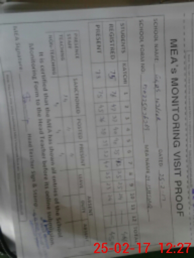 | Attendance Register | Head Teacher | MEA with School | Visit Proof |