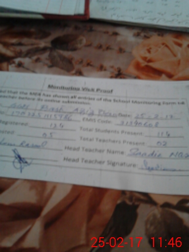 | Attendance Register | Head Teacher | MEA with School | Visit Proof |