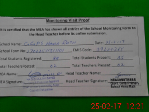 | Certified that this School was Inspected by the Undersigned MEA/DMO Today and the Information Stated Above is as Per Record. | |||||