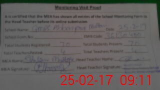 | Attendance Register | Head Teacher | MEA with School | Visit Proof |