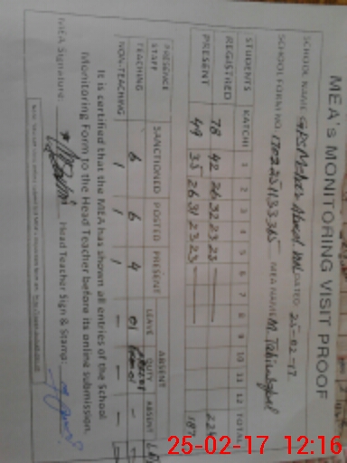 | Attendance Register | Head Teacher | MEA with School | Visit Proof |