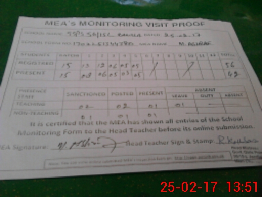 | Certified that this School was Inspected by the Undersigned MEA/DMO Today and the Information Stated Above is as Per Record. | |||||
