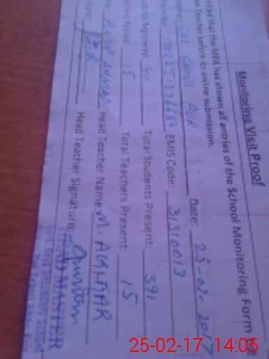 | EMIS Code: 31310013 | Name of School: GHS GHOUS PUR | |||