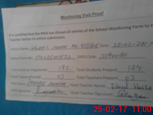 | EMIS Code: 31140080 | Name of School: GMES CHAK NO. 439/6-R | |||