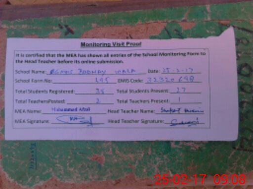 | Attendance Register | Head Teacher | MEA with School | Visit Proof |
