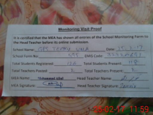 | EMIS Code: 32320691 | Name of School: GPS TEETKY WALA | |||