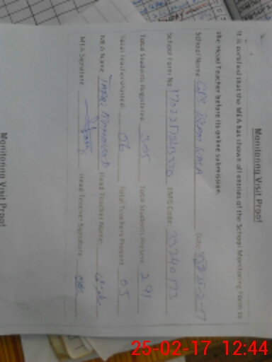 | Monitoring Date: 25-02-2017 | Start Time: 25-02-2017 12:30 PM | End Time: 25-02-2017 12:47 PM | Name of MEA: A-**** TA**** ME**** | |