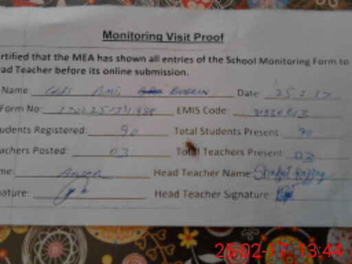 | Certified that this School was Inspected by the Undersigned MEA/DMO Today and the Information Stated Above is as Per Record. | |||||