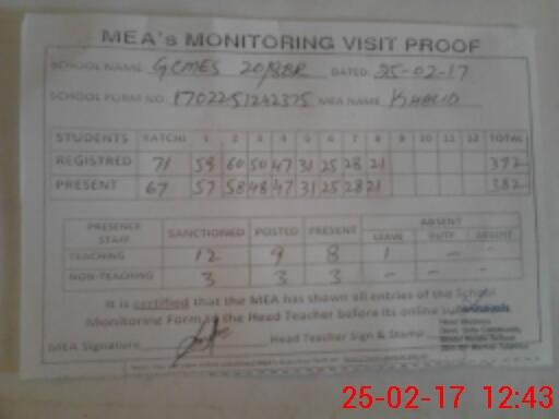 | Attendance Register | Head Teacher | MEA with School | Visit Proof |