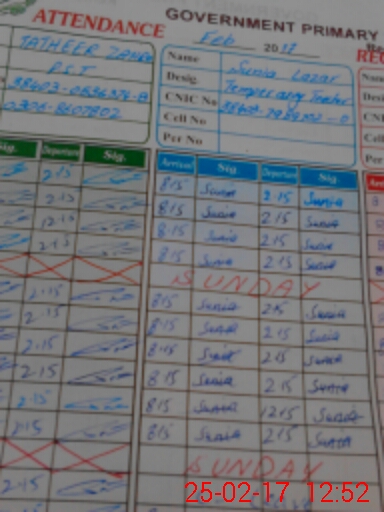 | CNIC | Full Name | Designation | R/C | Absence During Last Calender Month |