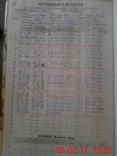 | CNIC | Full Name | Designation | R/C | Absence During Last Calender Month |