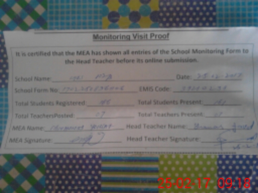 | Certified that this School was Inspected by the Undersigned MEA/DMO Today and the Information Stated Above is as Per Record. | |||||