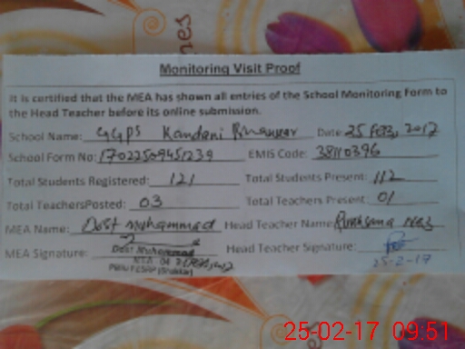 | Certified that this School was Inspected by the Undersigned MEA/DMO Today and the Information Stated Above is as Per Record. | |||||