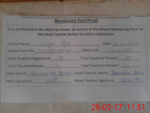 | EMIS Code: 39210566 | Name of School: GGPS 99/D | |||