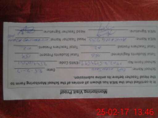 | Certified that this School was Inspected by the Undersigned MEA/DMO Today and the Information Stated Above is as Per Record. | |||||